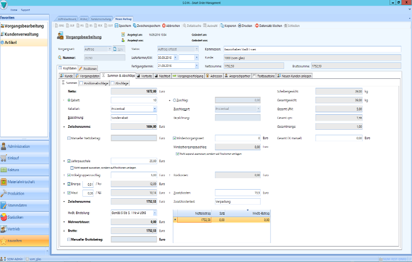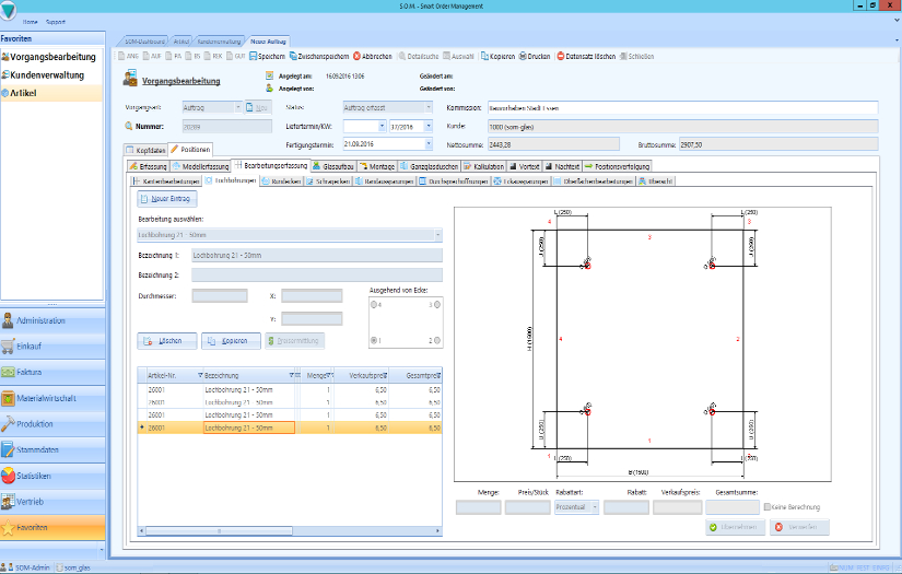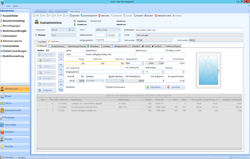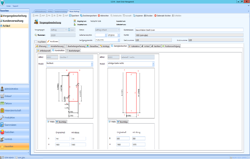 som.Glas® ist eine Glassoftware für Glaser/eien, Glashandel, Glasbau, und der Glas-Industrie, welche die Arbeitsabläufe vereinfacht und die Büroarbeit um ein Vielfaches reduziert. Auch in der Produktion unterstützt unsere Glassoftware Ihr Unternehmen mit der Betriebsdatenerfassung (BDE) via Scan , Optimierung, Kapazitätsplanung, Tourenplanung, Gestellverwaltung, Lager- u. Materialwirtschaft. Das Schreiben von Angeboten bis Rechnungen, sowie aktive Kundenverwaltung und Produktionsteuerung geschieht im Handumdrehen, so dass mehr Zeit für das Wesentliche bleibt. som.Glas® kann in einer Cloud oder als lokale Installation eingesetzt werden. Die Vorteile der som.Cloud für Sie sind: Keine Installation, keine Wartung, keine Anschaffung teurer Hardware, von überall mit jedem PC und Mobilgerät erreichbar. Gerne erläutern wir Ihnen die Vorteile von som.Glas® in einer unverbindlichen Präsentation.