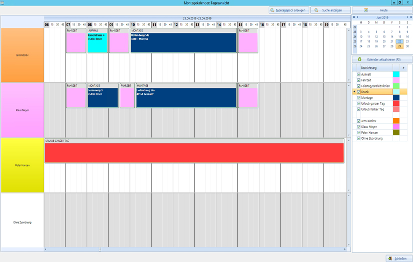 - Montageplanung inkl. Kalender für beliebig viele Monteure
